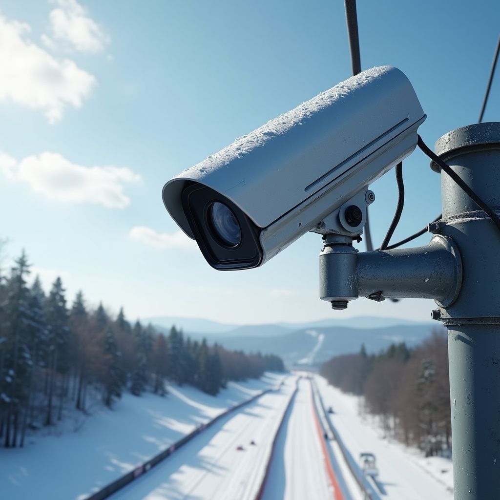 Positioned to cover the mid-mountain slalom section, this camera offers wide-angle views and zoom capabilities to track racers navigating tight gates and quick turns.